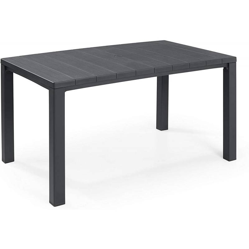 keter tavolo julie dal design classico e elegante. realizzato in pvc e si monta in 5 minuti. montato misura 147x90x74,5 con finitura effetto legno. colore grafite