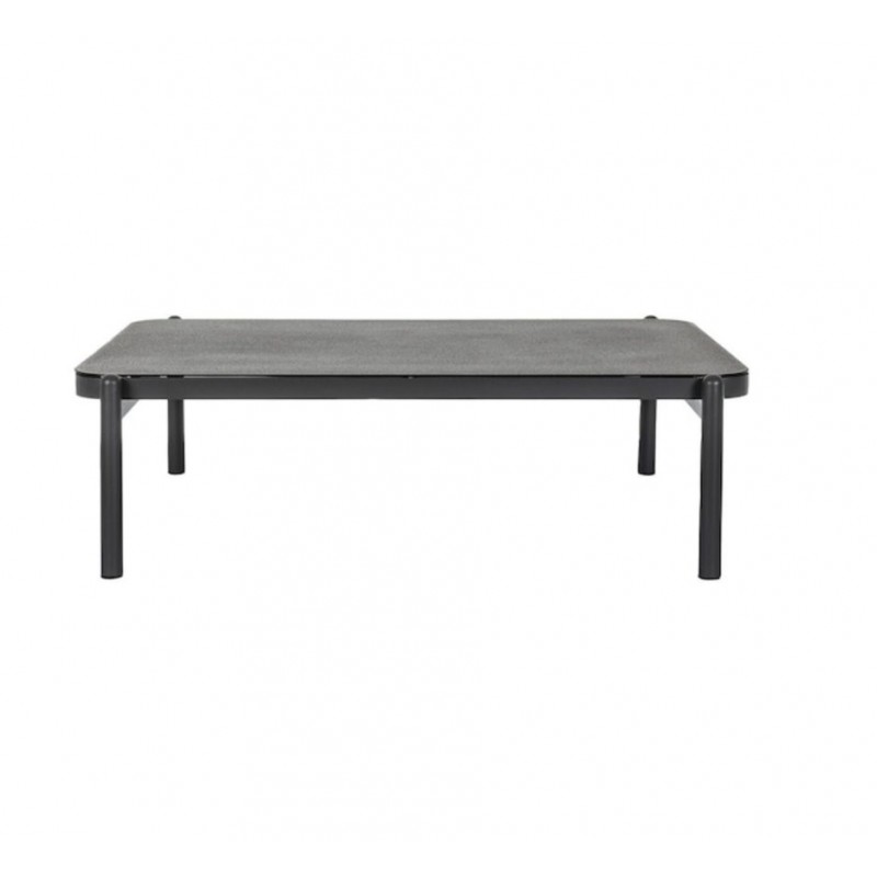 struttura in alluminio verniciato a polvere (poliestere). piano in vetro con effetto materico di pietra naturale color antracite. viteria in acciaio inossidabile. gambe da assemblare.
