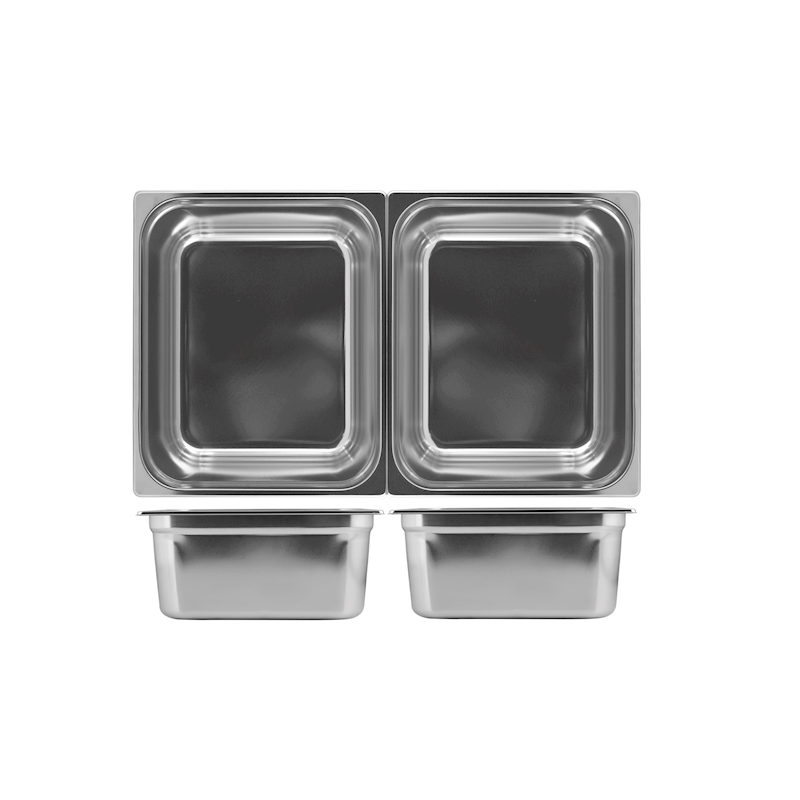 Il Set 2 Teglie Da Forno E Freezer Gastronorm GN1/2 H100-BA12100 è l'arma segreta di ogni chef professionista. Realizzato in acciaio inox di altissima qualità, è robusto e durevole, e può resistere a temperature estreme, fino a 300°C. Le sue dimensioni standardizzate lo rendono compatibile con tutti i tipi di attrezzature da cucina professionale, compresi i forni professionali da ristorazione. La finitura cromata è elegante e professionale, e rende le teglie facili da pulire e mantenere. Con questo set di teglie, puoi preparare, conservare e servire i tuoi piatti con stile e professionalità, sapendo che sono al sicuro e in perfette condizioni