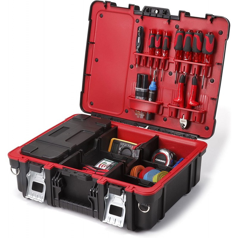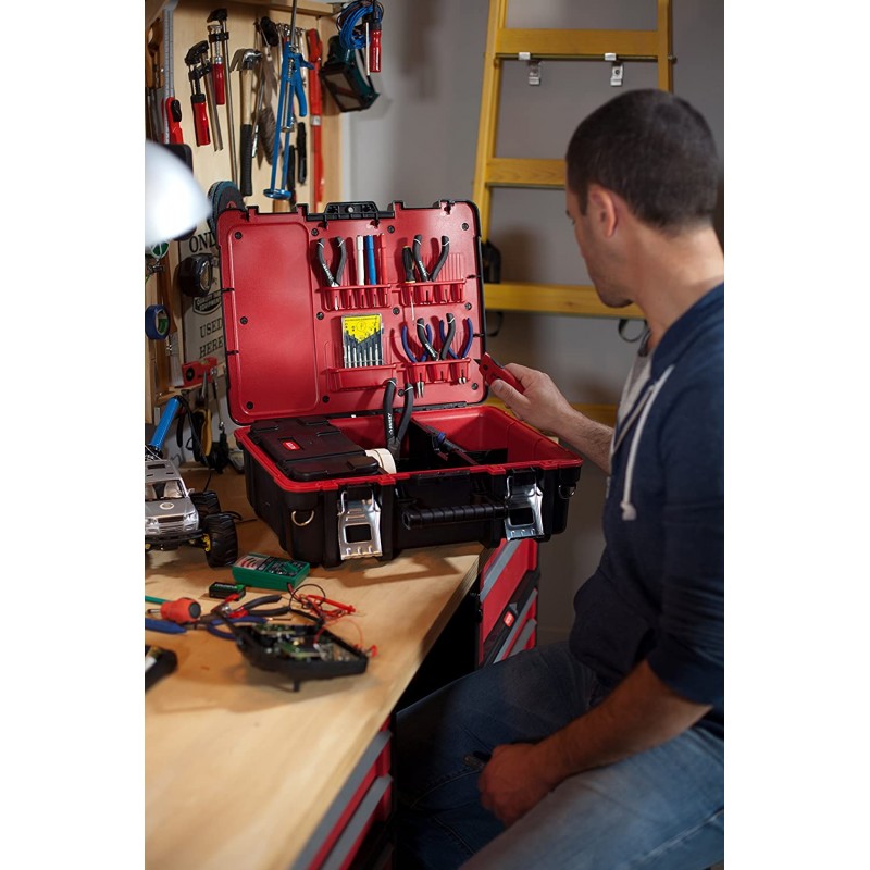 una cassetta degli attrezzi robusta e pratica con una grande capacità di riempimento. il design raffinato permette di riporre attrezzi di diverse dimensioni. l'organizer interno offre un comfort di lavoro e consente un facile accesso agli strumenti e agli accessori di cui avete bisogno. il prodotto è stato realizzato con materiali di alta qualità che permettono un uso duraturo anche in condizioni difficili. una comoda maniglia consente un facile trasporto e un uso sicuro. dimensioni: 480 x 177 x 378.